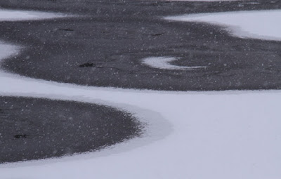 帰りに中綱湖に寄ってみた。雪が降り続いて雪が描く模様が面白い